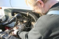 Beim Motor-Check legte "Auto-Doc" Poggel Hand an und zerlegte den Vergaser, um alles zu reinigen und anschließend neu zu justieren. Dabei tat der alte Bosch-Motortester, den schon Papa Poggel in den 60er Jahren im Einsatz hatte, gute Dienste. Bei der ersten Testfahrt mit dem Sechszylinder hatte Azubi Malte Wißdorf auf dem Beifahrersitz regelrecht Angst: "Das Ding geht ab wie Schmitz' Katze!" – und der glückliche Besitzer ein breites Grinsen im Gesicht.